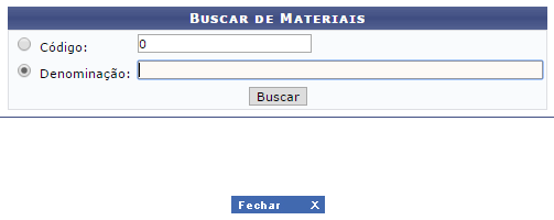 Clique em para buscar um novo material para a requisição. A seguinte tela de busca será mostrada: