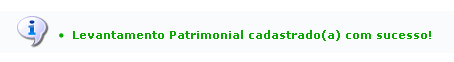 A seguinte tela mostrará o sucesso da remoção e Comprovante do Levantamento Patrimonial: