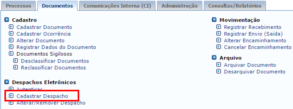 - cadastrar_despacho